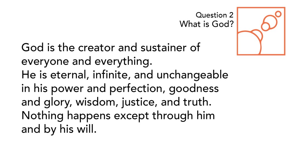 Although this is the second question, it is perhaps the most important question that we could ever seek to answer. The reasons are many, but perhaps the most important is given to us by Jesus whenever He was praying to the Father in John 17:3, which says: “And this is eternal life, that they know you, the only true God, and Jesus Christ whom you have sent.” God is not merely the granter of eternal life; rather, knowing Him is eternal life. Also, by implication, to be ignorant of God is to be divorced and cut off from life everlasting. What then could be more important than knowing God? And what better place to begin than with the question before us: what is God? The answer that the catechism gives contains three sentences, which easily gives a three part structure to our meditation.