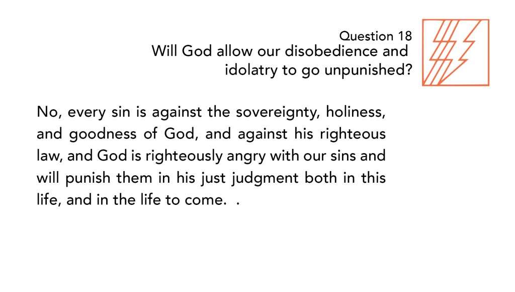 Of course, that is precisely what many believe God must do. Although they have transgressed the law of the Creator, they demand that the Creator overlook their rebellion. The catechism firmly rejects this erroneous thinking by first answering simply: no. No, God will not allow our sins to go unpunished. The remainder of the answer explains why that is the case.