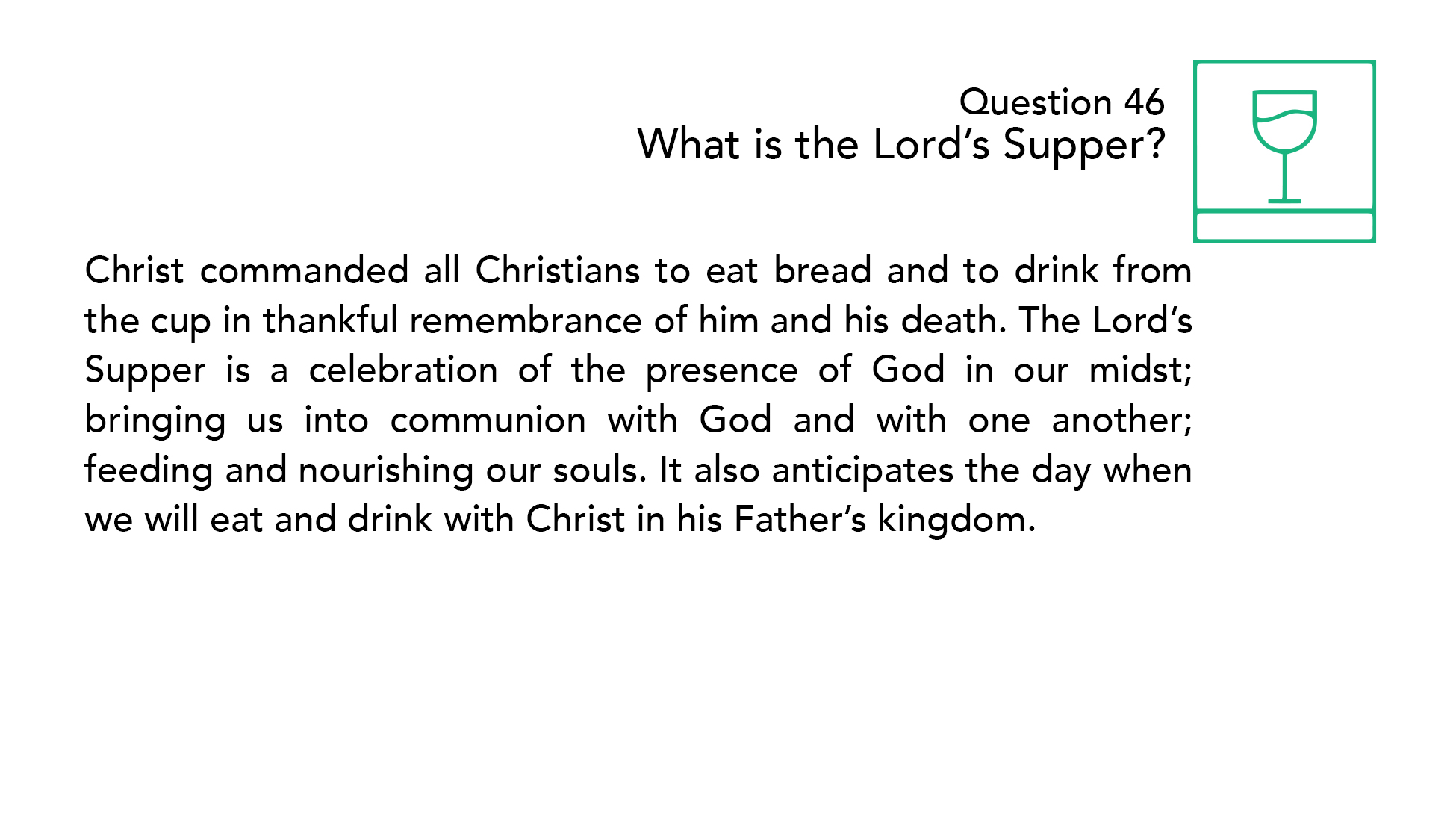 After addressing baptism over the past two questions, we now come to the second ordinance: the Lord’s Supper. The catechism’s answer begins by grounding the Supper in Christ’s command, which again is what makes it an ordinance. Just as baptism is commanded by Christ in the Great Commission, so the Lord’s Supper was instituted at the last supper.